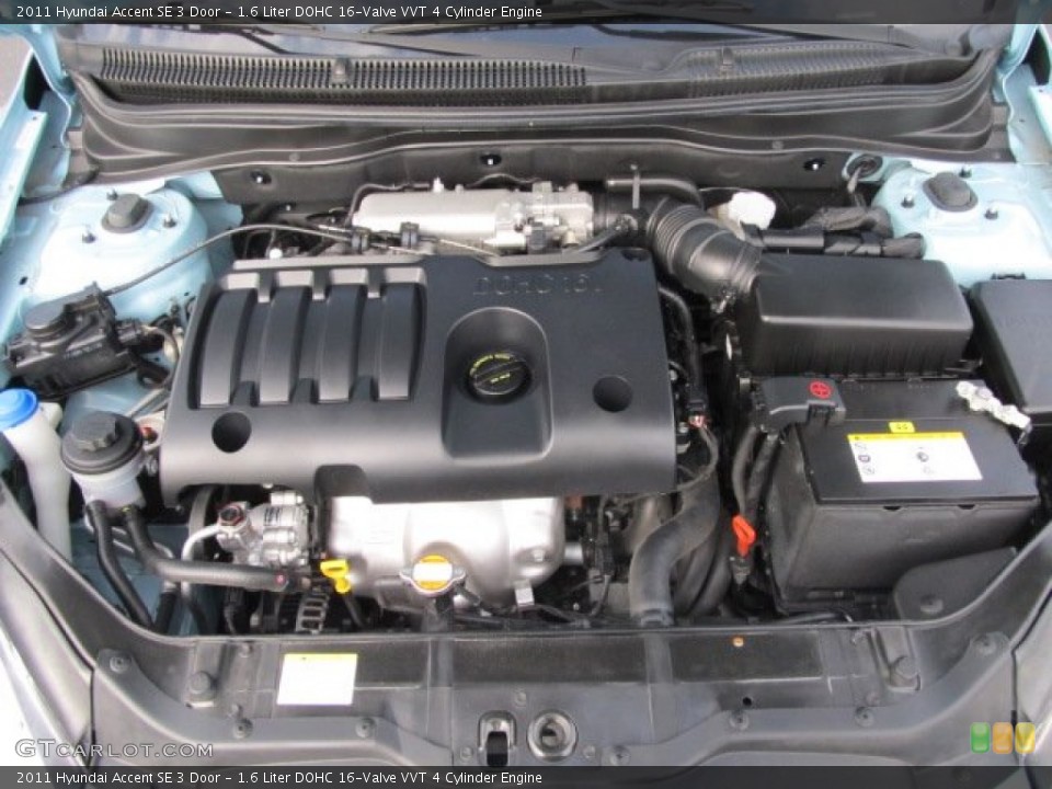 1.6 Liter DOHC 16-Valve VVT 4 Cylinder Engine on the 2011 Hyundai Accent GS 3 Door