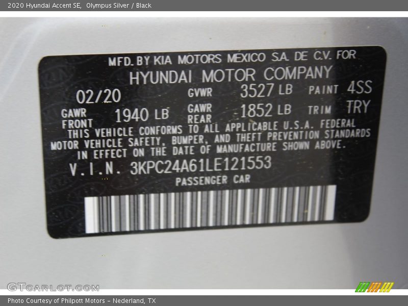Olympus Silver / Black 2020 Hyundai Accent SE Photo #23