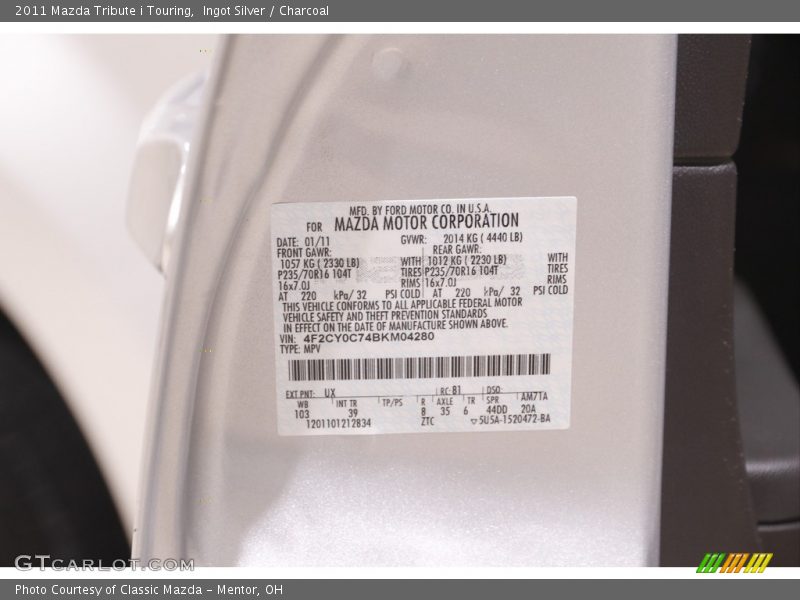 2011 Tribute i Touring Ingot Silver Color Code UX Photo #19