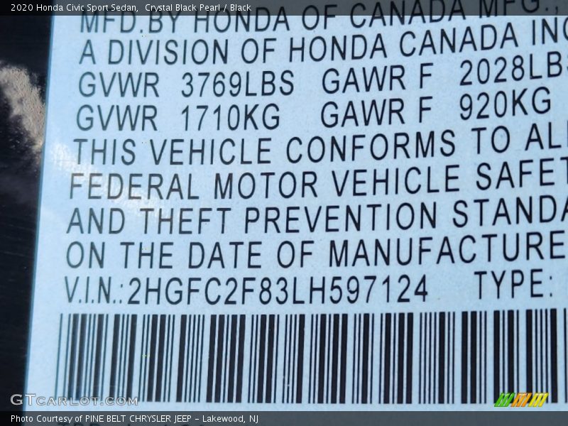 Crystal Black Pearl / Black 2020 Honda Civic Sport Sedan Photo #30
