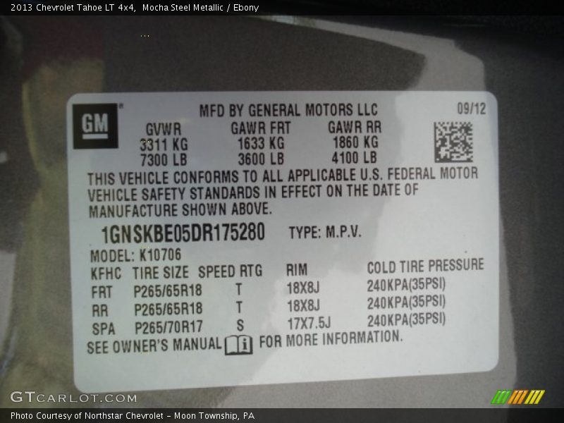 Mocha Steel Metallic / Ebony 2013 Chevrolet Tahoe LT 4x4 Photo #20