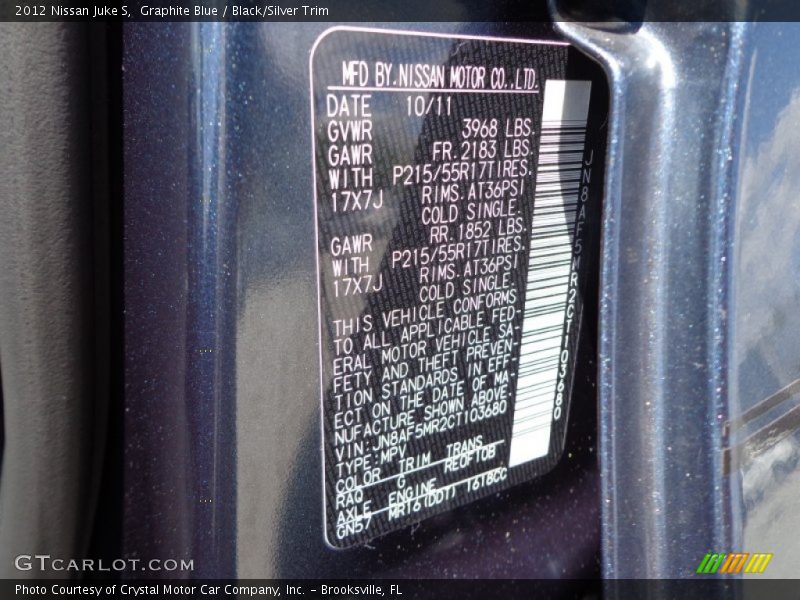 2012 Juke S Graphite Blue Color Code RAQ Photo #23