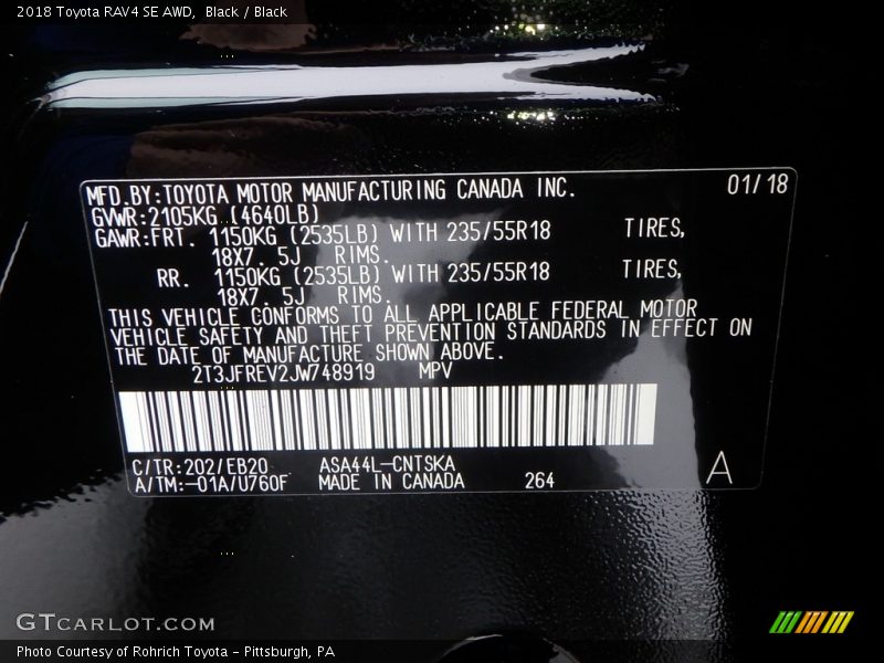2018 RAV4 SE AWD Black Color Code 202 Photo #10