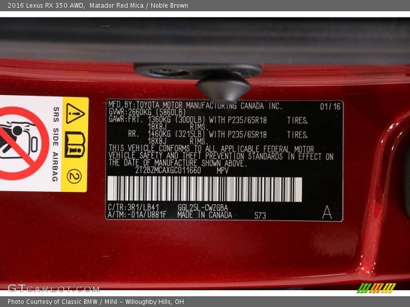 2016 RX 350 AWD Matador Red Mica Color Code 3R1 Photo #26