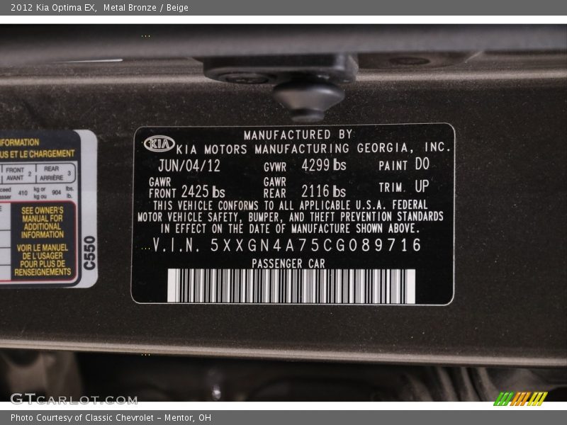 Metal Bronze / Beige 2012 Kia Optima EX Photo #18