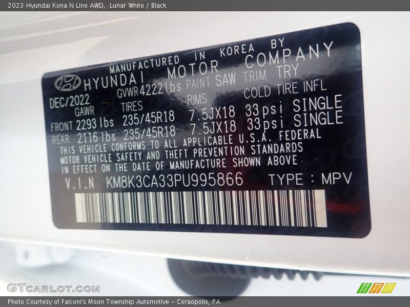 2023 Kona N Line AWD Lunar White Color Code SAW Photo #18