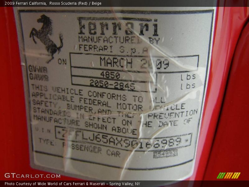 Info Tag of 2009 California Photo #10